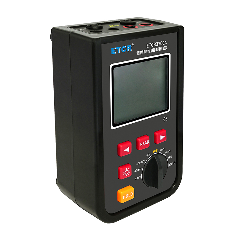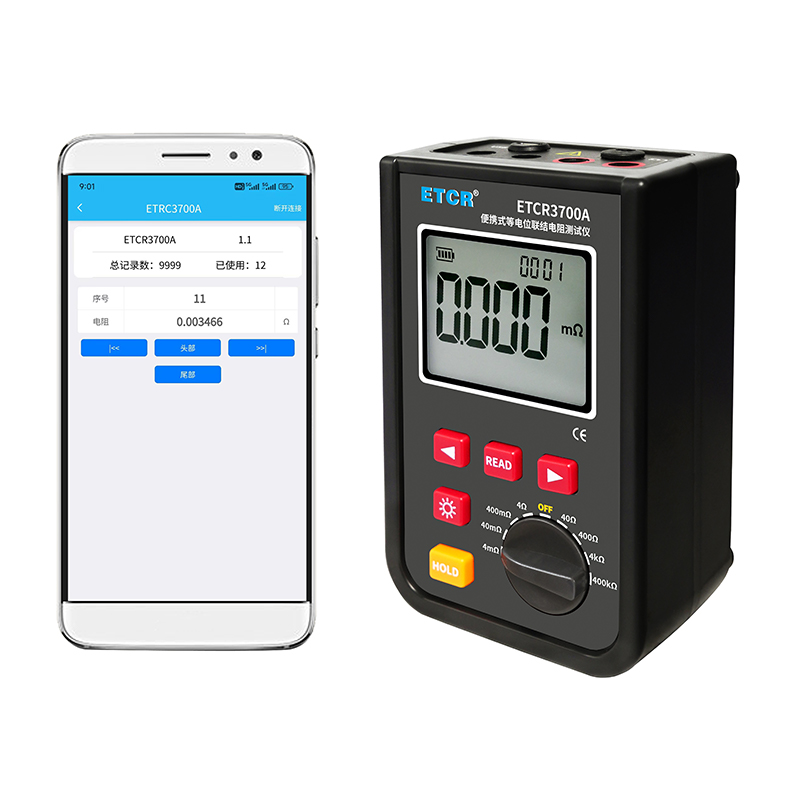 ETCR3700A等電位聯(lián)接電阻測試儀由主機、測試線組成。寬量程:0.001mΩ~400kΩ,高分辨率1uΩ,最大測試電流:1.2A,主機大屏LCD顯示,采用可充電大容量鋰電池,儀表具有自動關機功能,數(shù)據(jù)存儲功能,存儲測試數(shù)據(jù)9999組,具有藍牙通訊,安裝APP后可在手機查看測試記錄,具有USB接口,安裝上位機軟件后,可將測試數(shù)據(jù)下載電腦進行保存、管理、查詢、分析、打印等,儀表操作簡易,攜帶方便。
