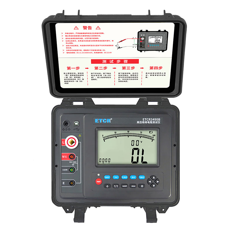 ETCR3490系列高壓絕緣電阻測試儀整機美觀,量程寬,精度高,分辨率高,操作便捷,攜帶方便,準確可靠、性能穩定,抗干擾能力強。而且具有防震、防塵、防潮結構,是電信、電力、氣象、機房、油田、機電安裝和維修以及利用電力作為工業動力或能源的工業企業部門常用而必不可少的儀表。適用于測量各種絕緣材料的電阻值及變壓器、電機及電器設備等的絕緣電阻。