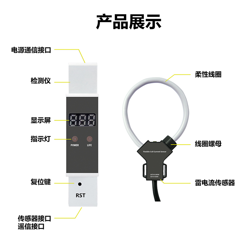 ETCR2700雷電流在線監測儀由主機與柔性線圈組成。主機使用標準35mm導軌安裝方式。柔性線圈輕便柔軟,安裝極為方便,直徑可按用戶要求定制。