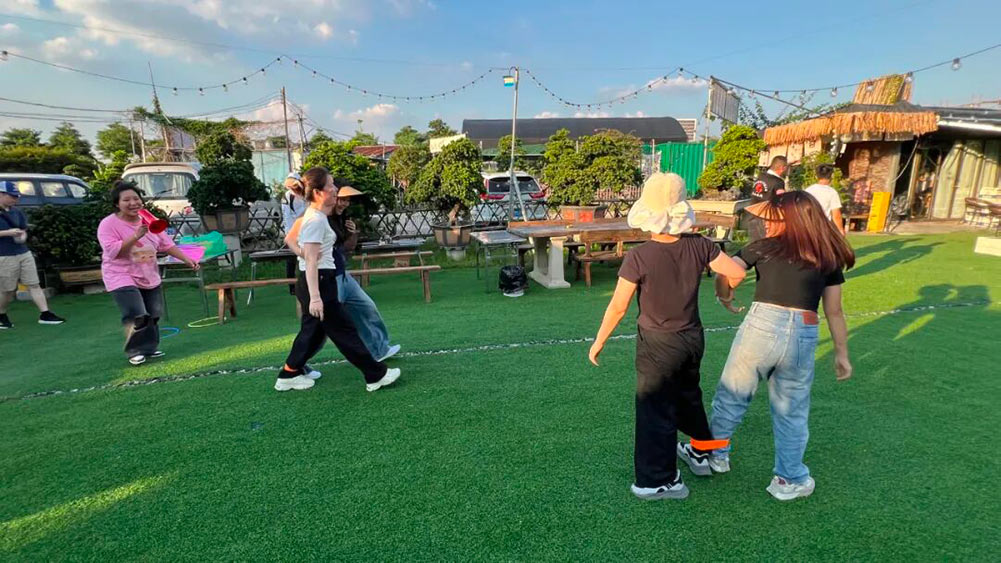 最令人捧腹的是,當一組隊員即將到達對岸時,最后一位隊員卻因“石頭”不夠而陷入困境。在大家的集思廣益下,最終想出了輪流踩石、前后接應的妙招。“這個困境多像我們上季度時的處境啊!”生產部張經理感嘆道,“正是通過跨部門的創意協作,我們才找到了最優解決方案。”